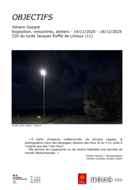 Par MAGALIE DAVID, publié le jeudi 20 novembre 2025 11:42 - Mis à jour le mercredi 26 novembre 2025 09:15Exposition "Objectifs" de Yohann Gozard, au CDI. Du 14 novembre au 18 décembre 2025 -