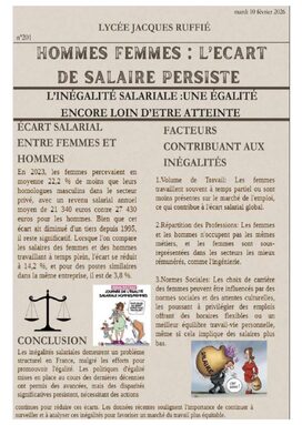 À l’occasion de la Journée internationale des droits des femmes, Clarence, Héloïse et Noémie de 2°1 ont réalisé un journal engagé sur les inégalités entre les femmes et les hommes. Nous vous invitons à découvrir leur regard.