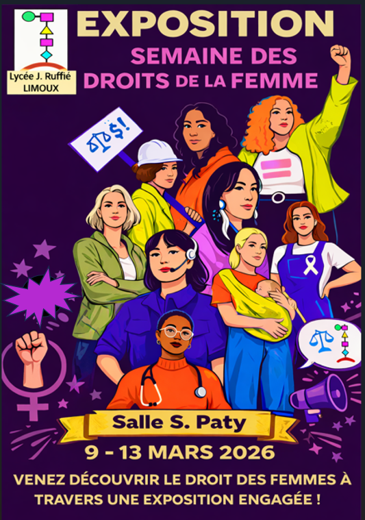 Le lycée Ruffié accueille une exposition à l’occasion de la Semaine des droits de la femme, du 9 au 13 mars 2026 en salle S. Paty.